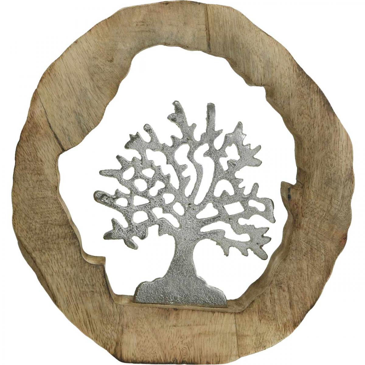 Déco sculpture arbre dans un anneau en bois décoration de table à poser 22×21×4cm