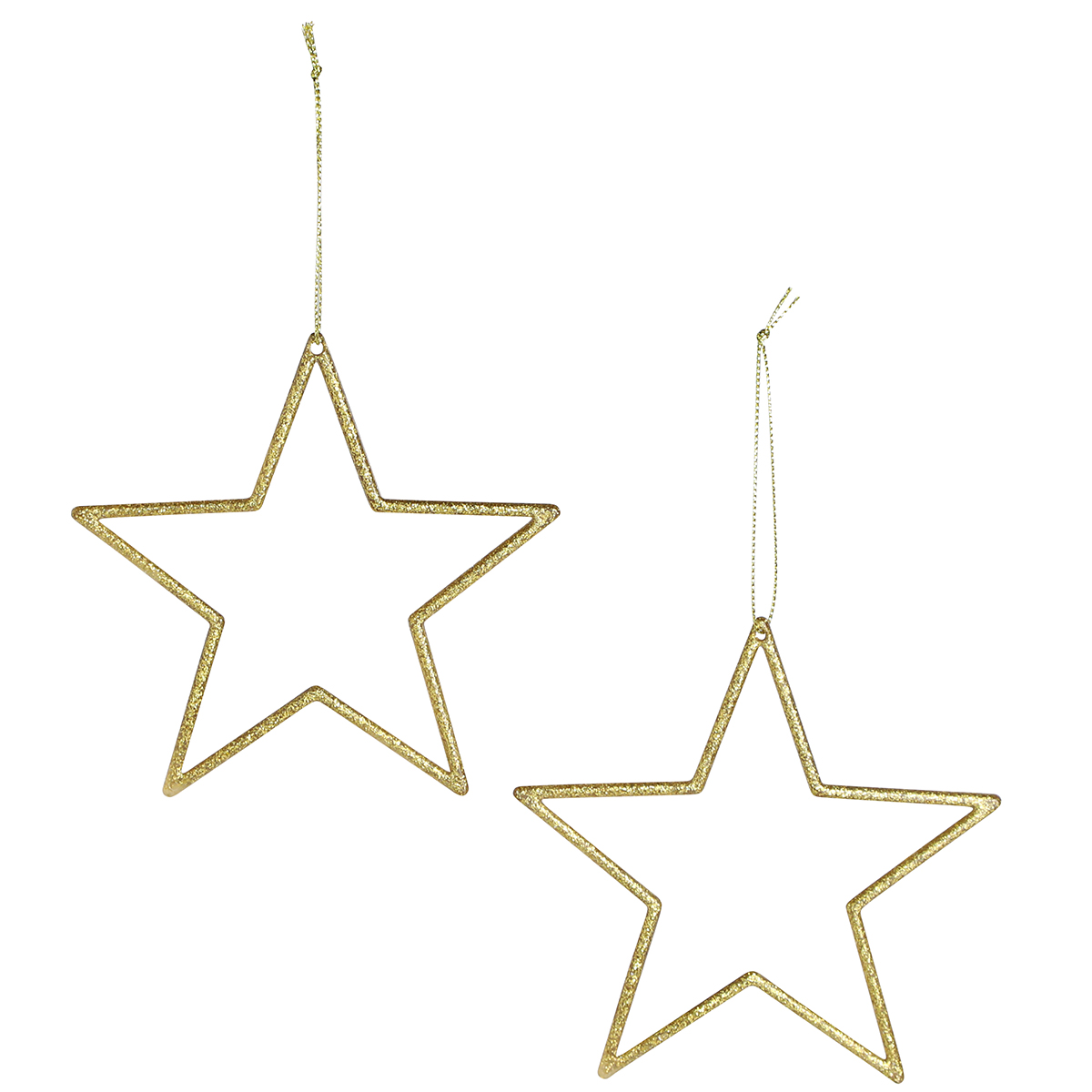 Apportez un éclat festif à votre Noël avec nos étoiles décoratives dorées brillantes à suspendre. Les étoiles dorées ajoutent une touche de glamour à votre sapin de Noël et créent une atmosphère luxueuse dans n'importe quelle pièce. La décoration de Noël attire tous les regards et se combine idéalement avec d'autres accessoires dorés.