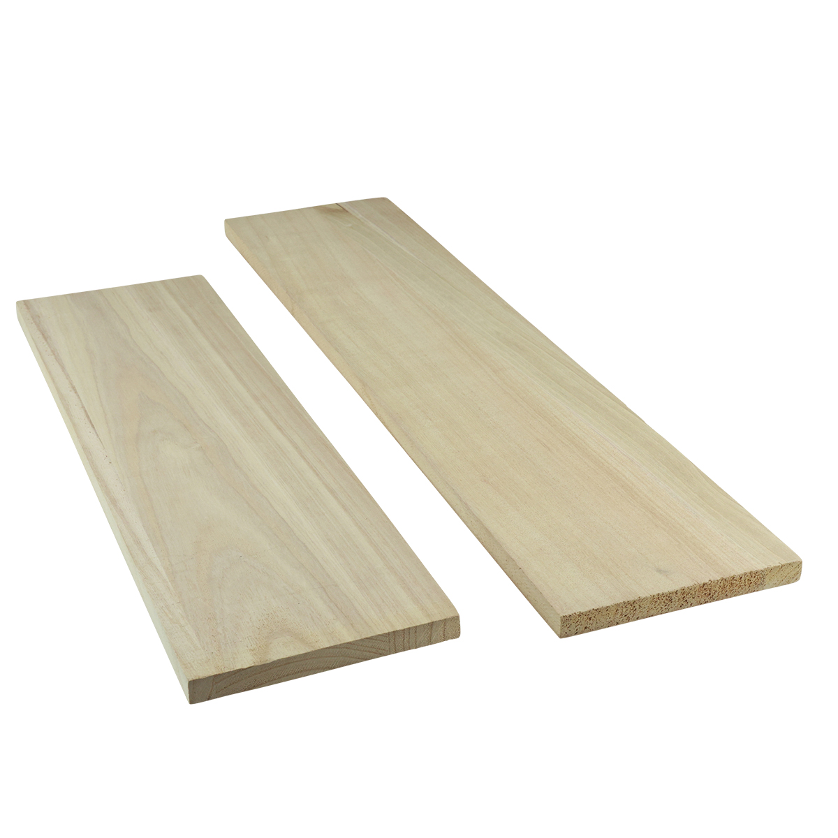 Das Set beinhaltet zwei unterschiedlich lange Paulownia-Tabletts ohne Lack. Selbstverständlich können Sie die Deko-Tabletts auch selbst lasieren oder lackieren.