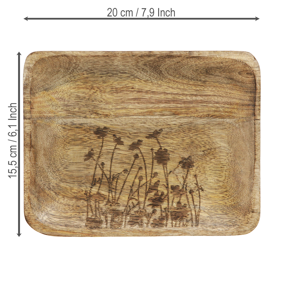 Deko Tablett Holz mit Blumenmuster Mangoholz 20×15,5cm