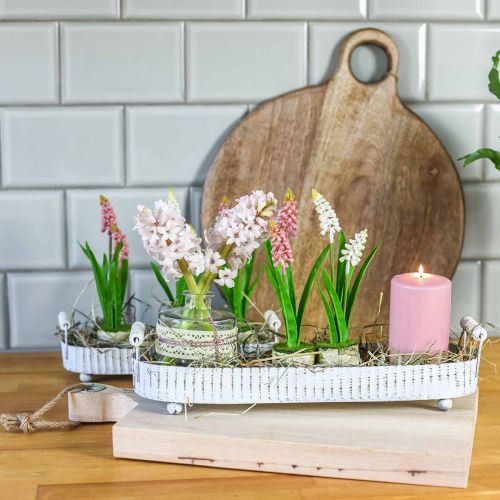 Deko-Tablett, Metalldeko oval, Kerzentablett Weiß, Silbern Shabby Chic L40/29,5cm 9,5/8,5cm 2er-Set