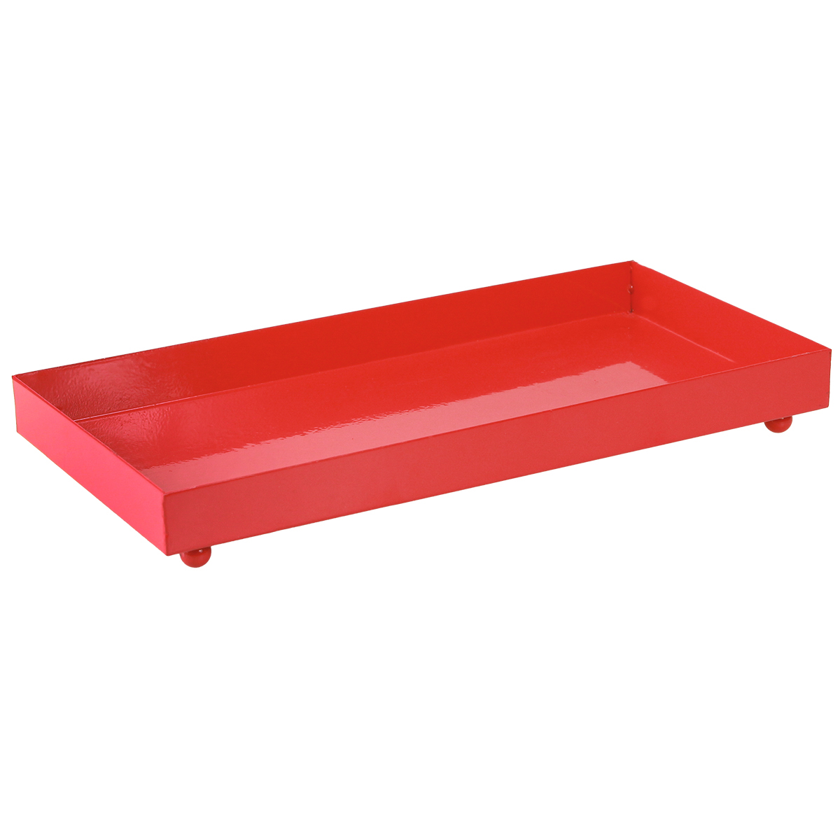 Deko Tablett rechteckig Rot Metalltablett mit Füßen 30×15cm