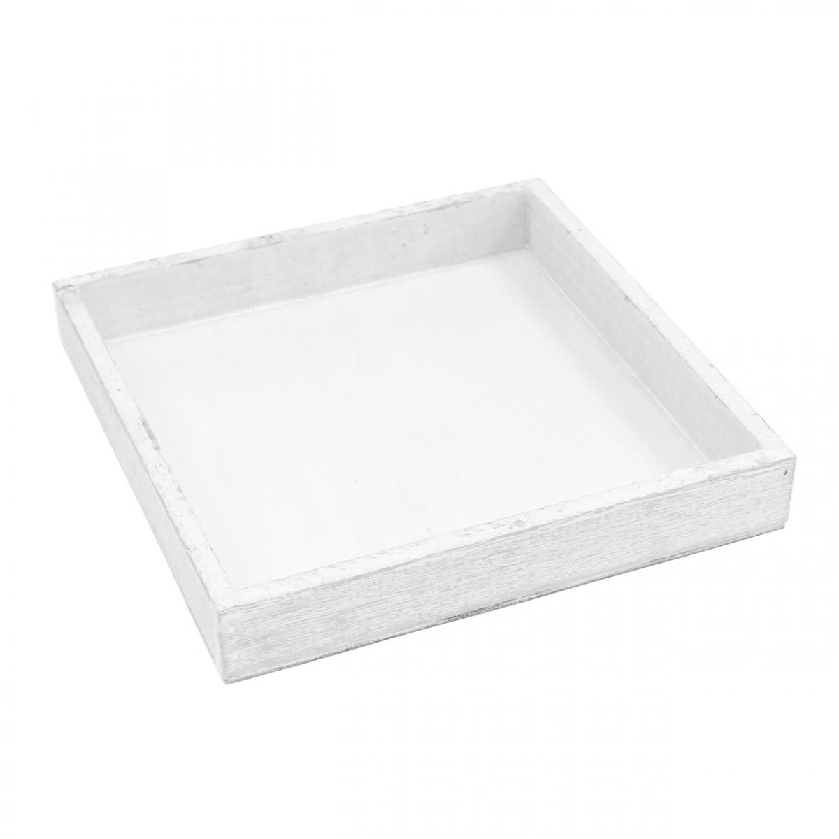 Produktname: Deko Tablett Weiß quadratisch Holz Vintage 19×19cm 2St