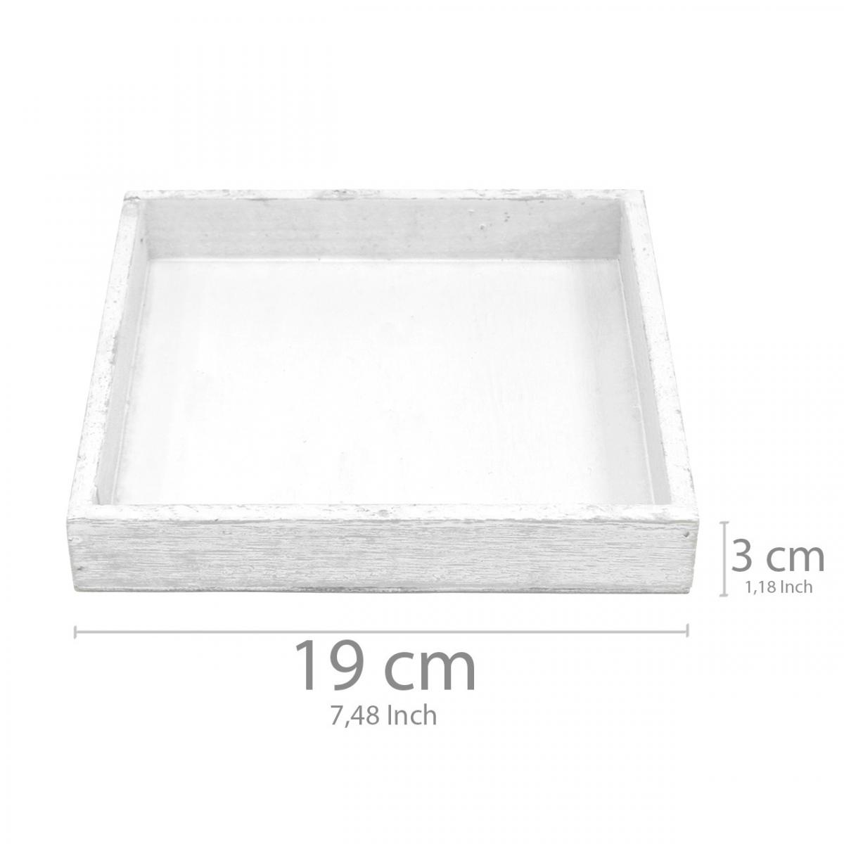 Deko Tablett Weiß quadratisch Holz Vintage 19×19cm 2St