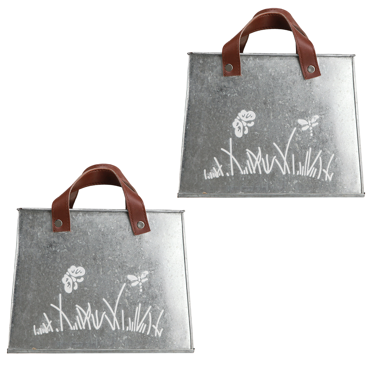 Deko Tasche Silber Weiß Braun Metall Pflanztopf L22cm 2St