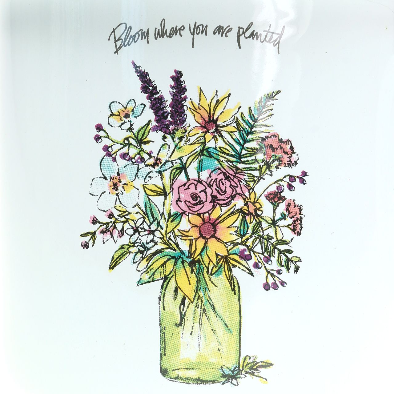 Quelle joli moyen de mettre des fleurs et des plantes en valeur ! Cette tasse décorative de la gamme VIANA est une pièce particulièrement ravissante. Cette tasse d'une couleur blanche sobre se distingue par un design floral et une jolie inscription : „Bloom where you are planted“, ce qui peut se traduire par „fleuri là où tu as été planté“. La surface de la tasse en métal a été émaillée avec soin, ce qui lui apporte un flair rétro.