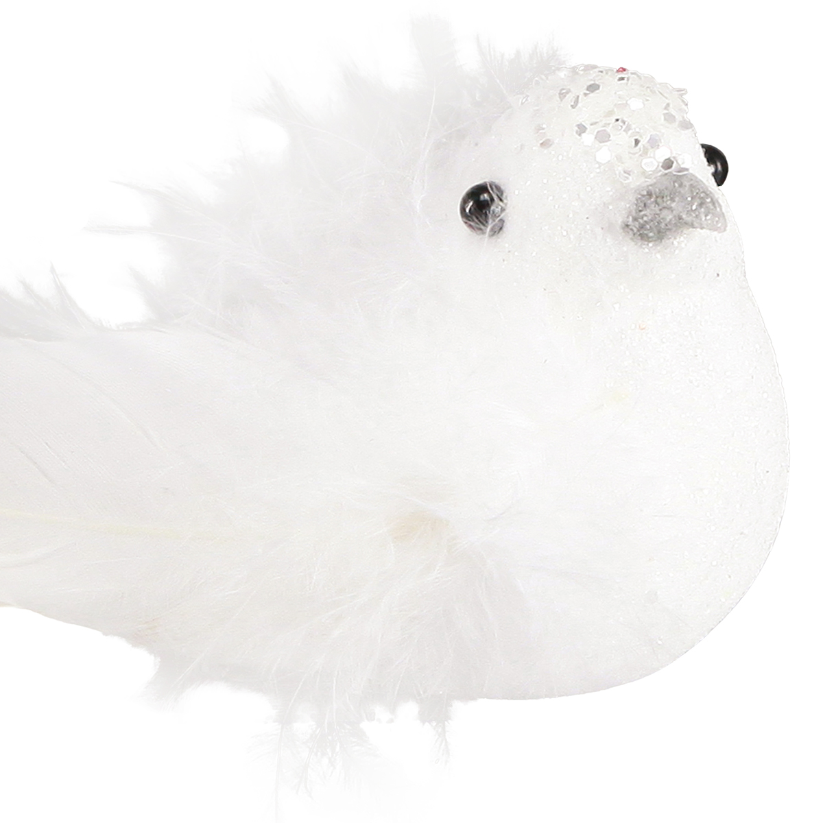 Colombe decorative su clip, coppia di colombe con piume e glitter, bianche, 16 cm, 2 pezzi