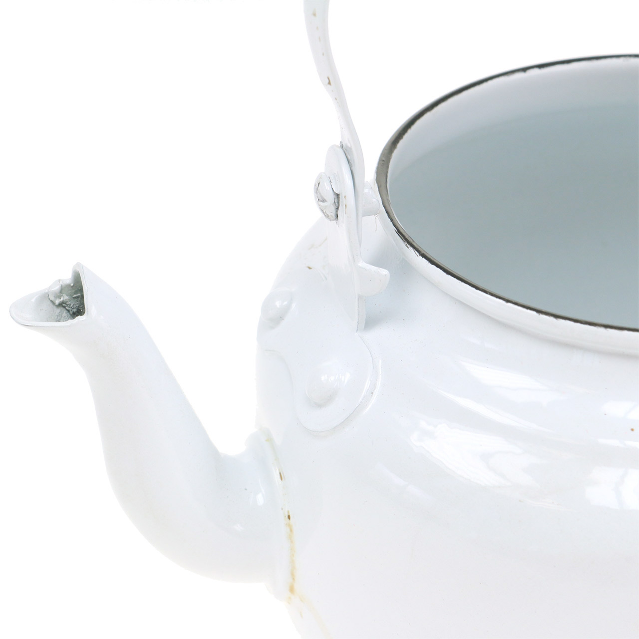 Penso che il mio bollitore fischi! Il bollitore da tè bianco decorativo non fischia, ovviamente, ma è una fioriera particolarmente chic e insolita con una maniglia pieghevole. Il bollitore è adatto anche come utensile di conservazione.