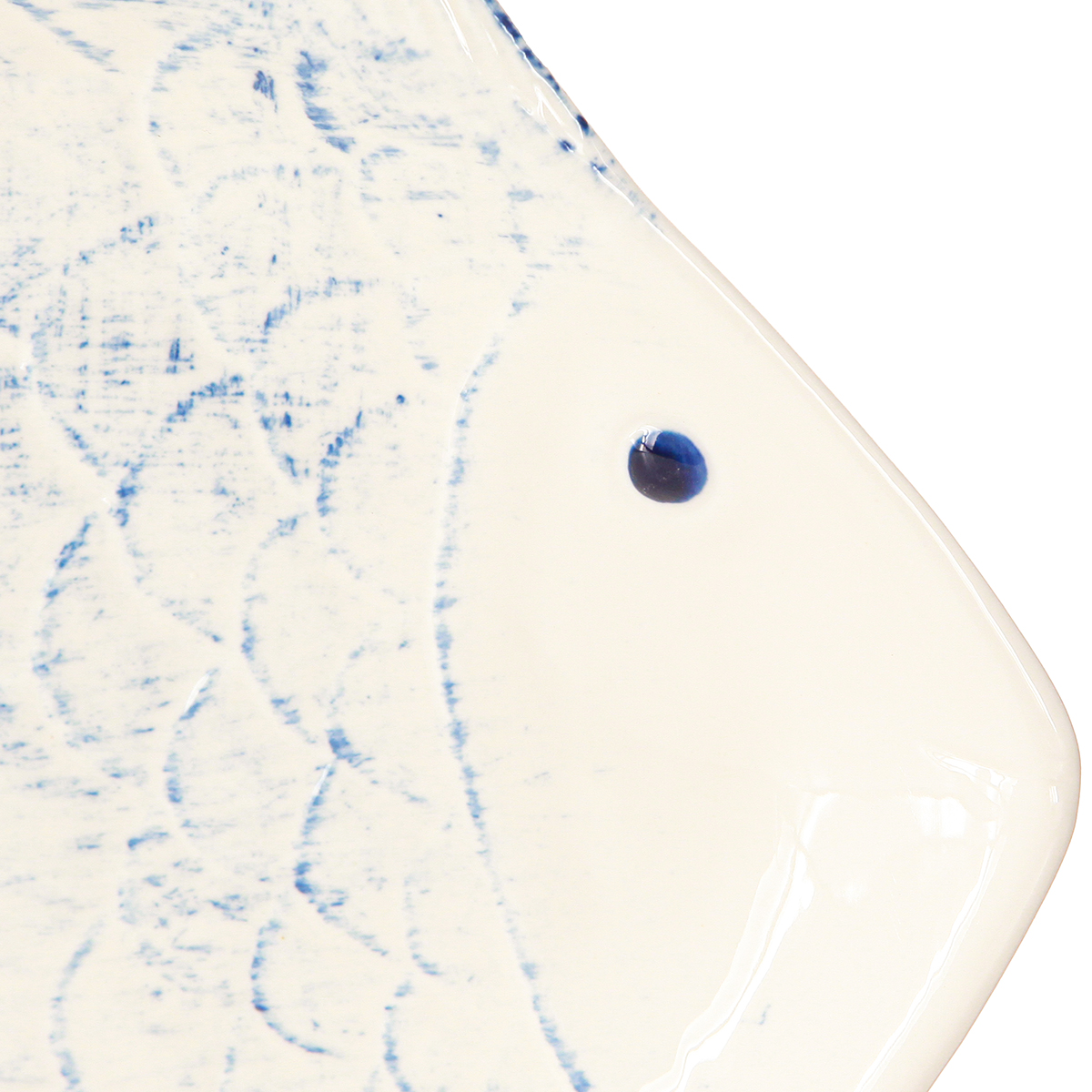Assiette décorative poisson en céramique décoration de table bleu blanc 30×22cm