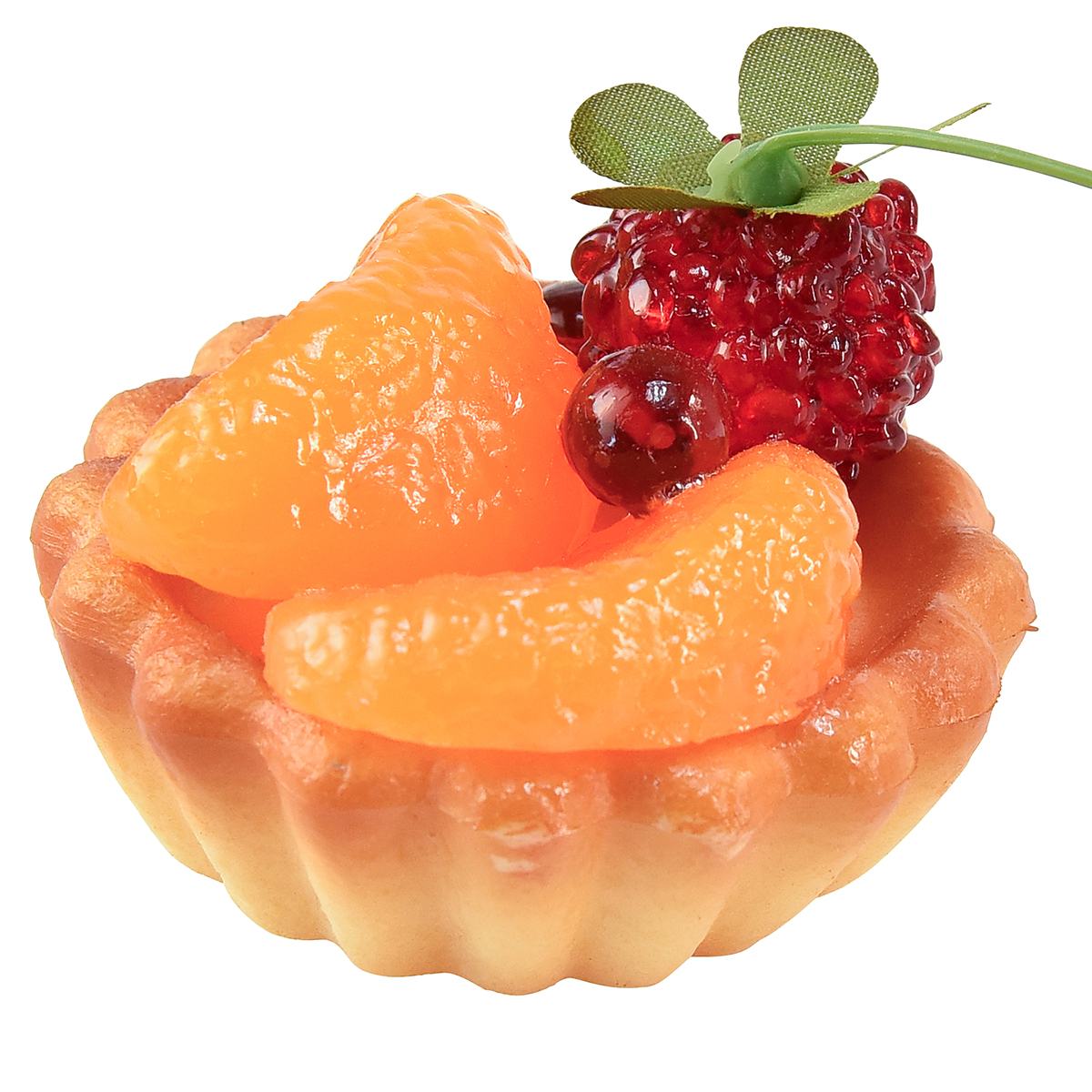 Produktname: Deko Mini-Törtchen mit Früchten 6cm, künstliche Kuchenattrappen für Schaufenster und Ausstellung, 4er Set