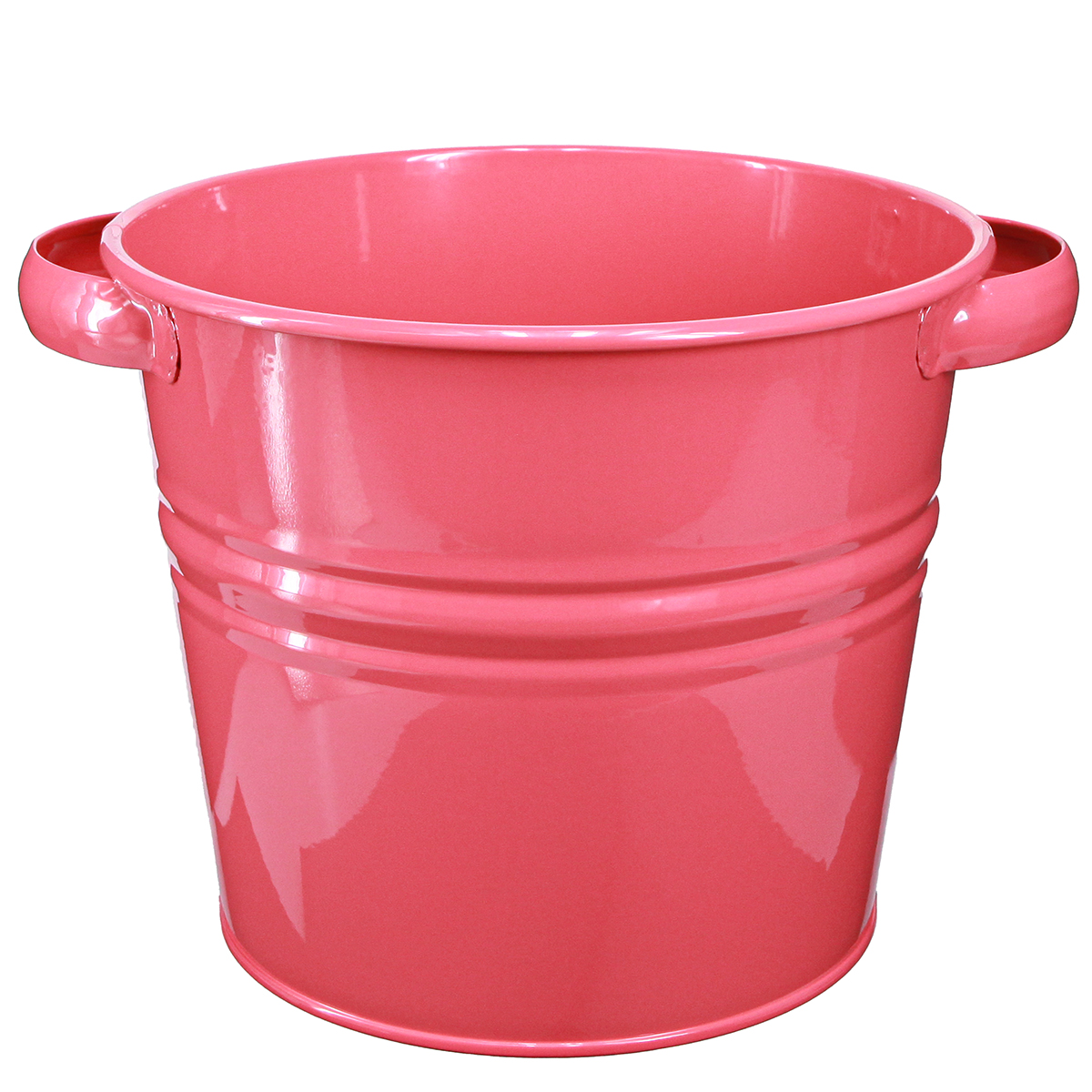 Deko-Topf im Vintage-Stil: Rosa Metall-Blumentopf mit Griffen