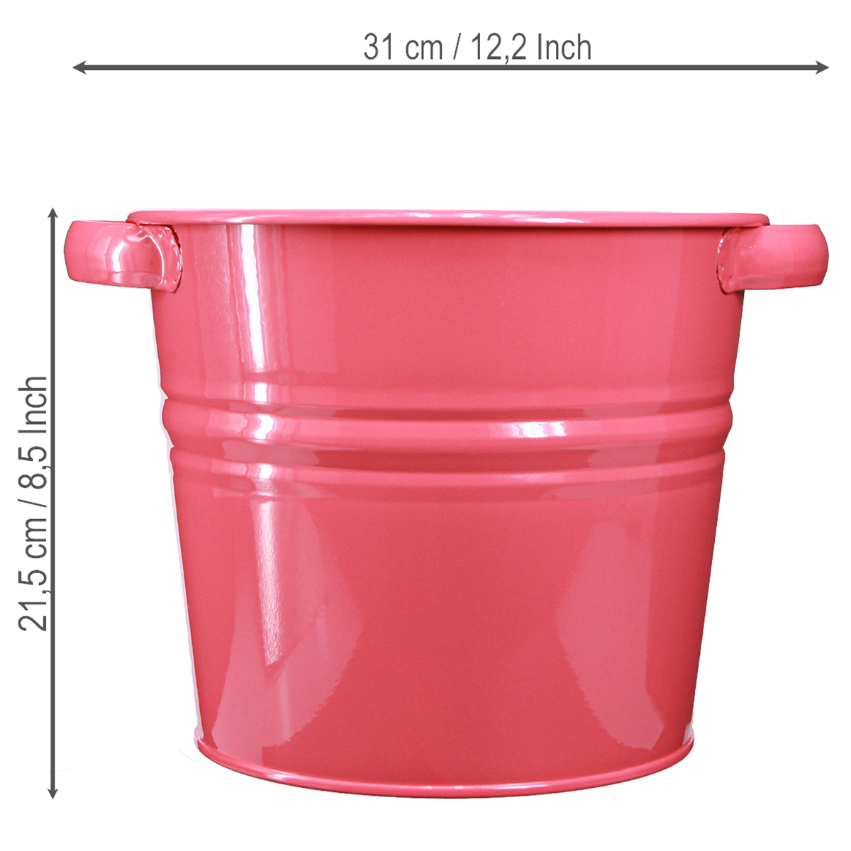 Deko-Topf im Vintage-Stil: Rosa Metall-Blumentopf mit Griffen