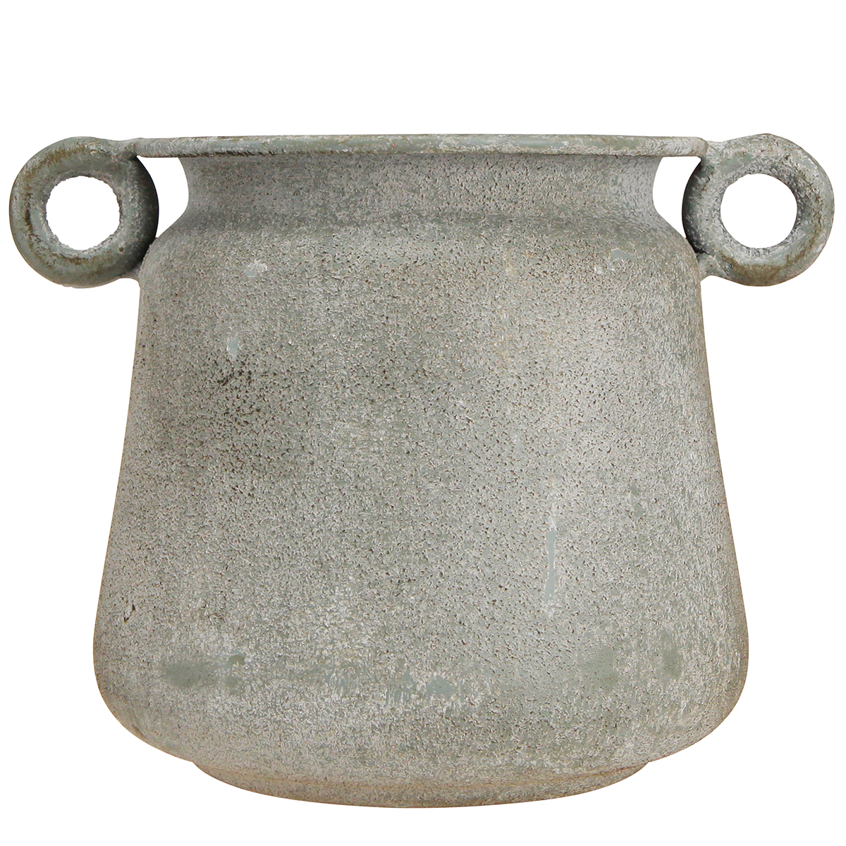 Pot décoratif jardinière vintage métal avec anses gris H13,5cm