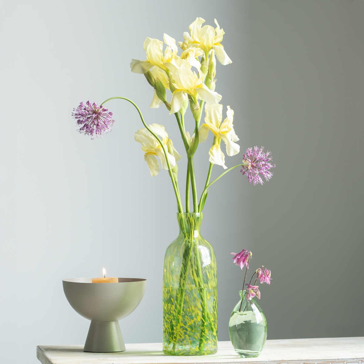 - Kombinieren Sie die Vase mit anderen Glasartikeln für eine vielschichtige Tischdeko.