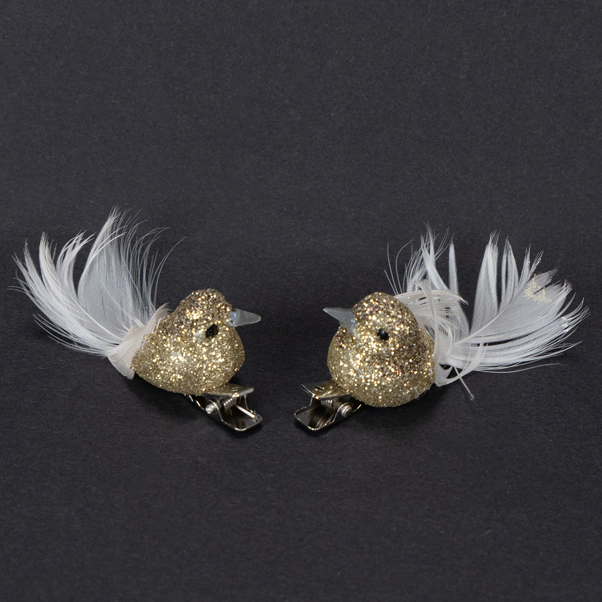 Coppia decorativa di colombe, uccelli decorativi con clip, dorati, 5 cm, 4 pezzi