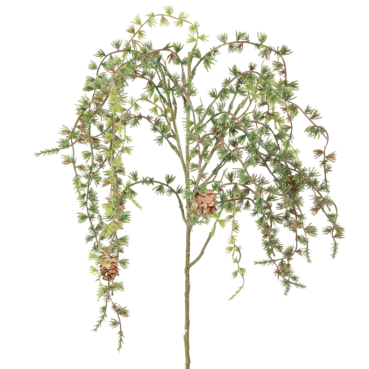 Die kleinen Nadeln der Kunstzweige sind realistisch und in hoher Qualität nachgebildet. Echte Lärchenzapfen vervollständigen das Erscheinungsbild des künstlichen Nadelzweigs. Die Kunstpflanze als Weihnachtsdeko endet in einem langen Stab, der sich sehr gut in Steckschaum befestigen lässt. Dank seines Metallkerns lässt sich der Stiel auch wunderbar zurechtbiegen.