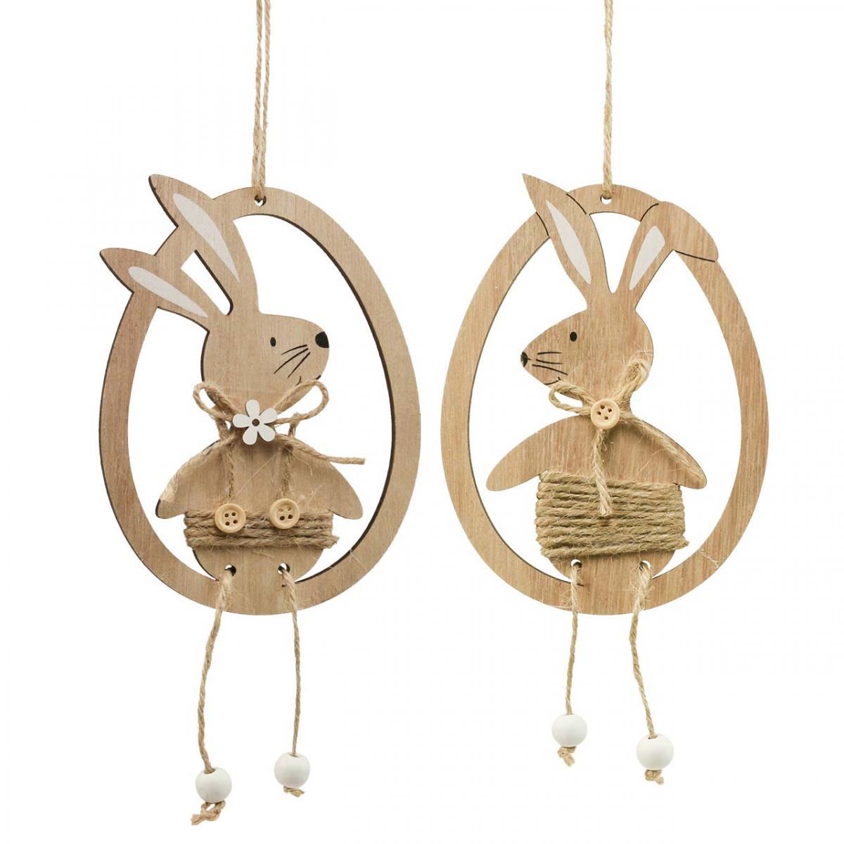 Ciondolo decorativo in legno con decorazione pasquale coniglietto in un uovo 9×1,5×23 cm 6 pz