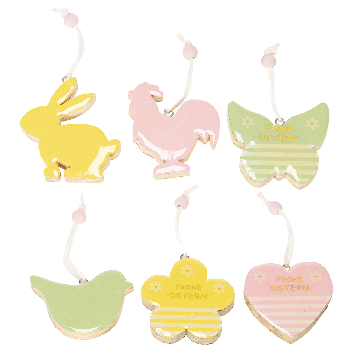 Produktname: Osterdeko zum Hängen Osterfiguren Anhänger Holz Pastellfarbe 7cm 6St