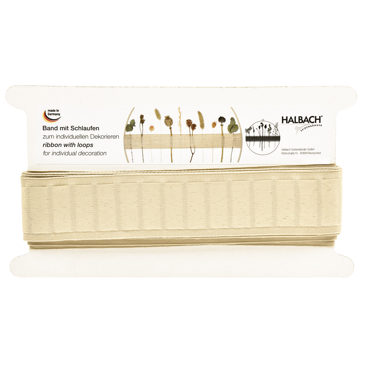 Das Dekoband des deutschen Herstellers Halbach zeichnet sich durch seine Vielseitigkeit aus. Es ist waschbar bis 30°C, wasserfest und lichtecht. Dadurch ist das Schlaufenband auch für den Einsatz im Freien, beispielsweise an einer Tür oder als Kranz, geeignet. Kreieren Sie filigrane Dekorationen, indem Sie mühelos Blumen und Gräser in die Schlaufen einfügen.