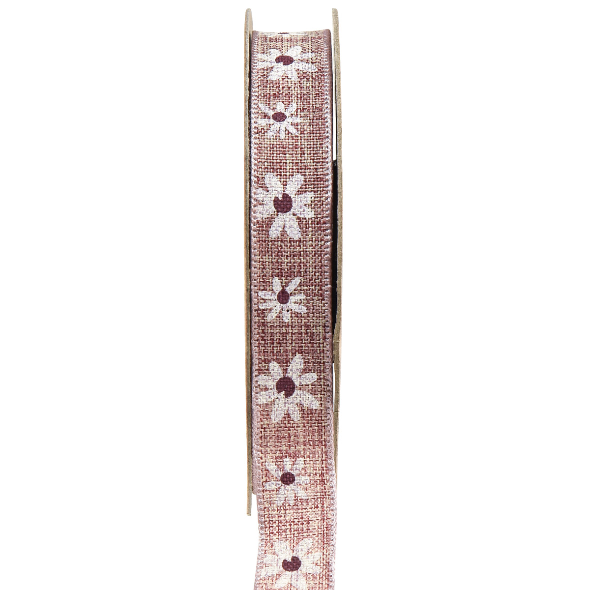 Produktname: Dekoband Blumen Geschenkband Weinrot Beige 15mm 15m