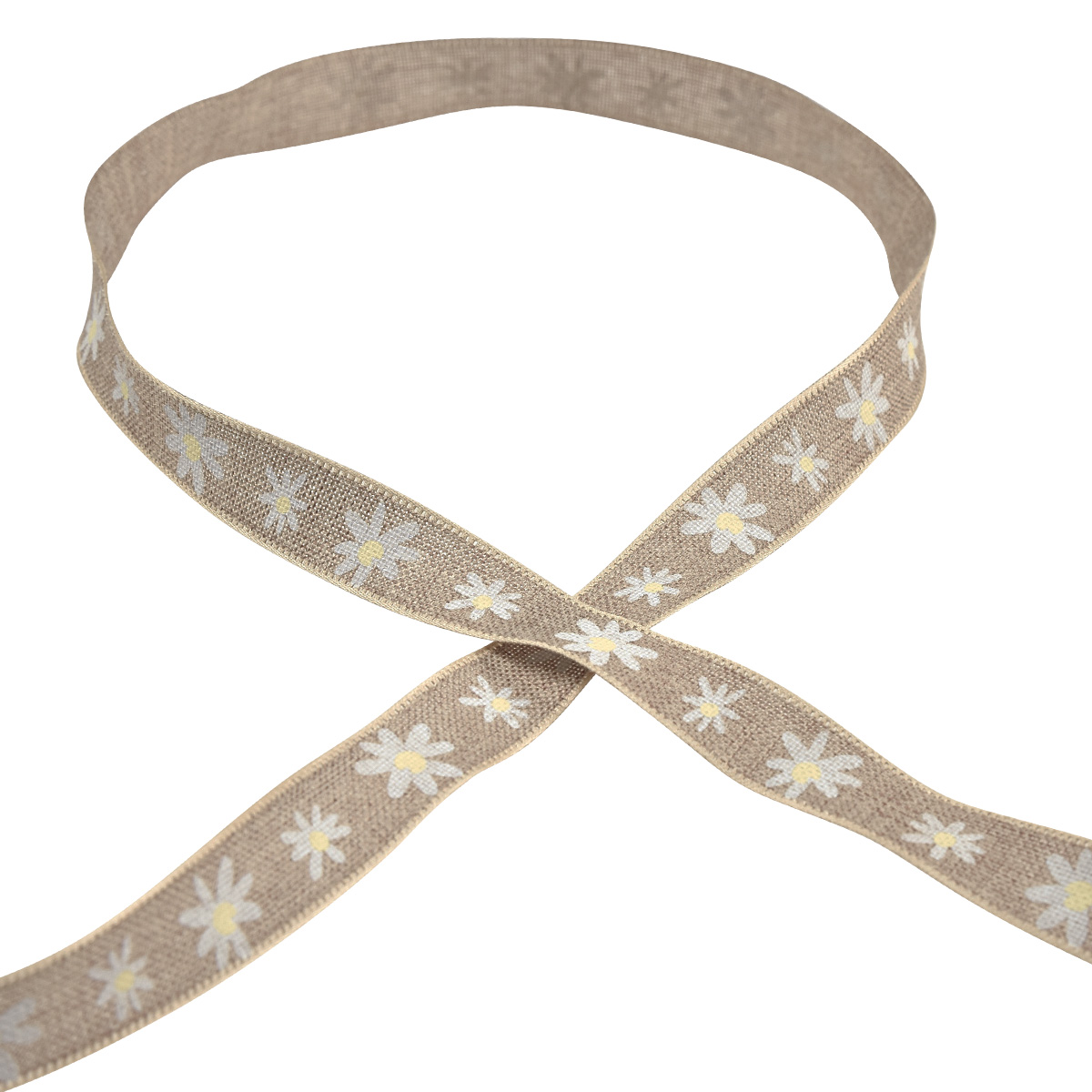 Produktname: Geschenkband Blumen Braun Weiß Dekoband 15mm 15m