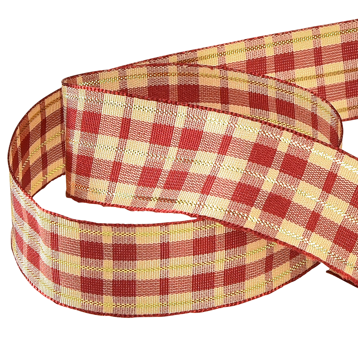 Ruban décoratif ruban décoratif ruban à carreaux rouge beige or W25mm L20m