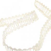 Le ruban décoratif blanc à motif cœur mesure environ 10 millimètres de large et environ 20 mètres de long. Il est composé à 100% de polyester et est enroulé sur une bobine en plastique.