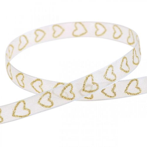 Dekoband Weiß mit Herzmotiv 10mm 20m