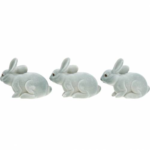 Dekofigur Hase Grau, Frühlingsdeko, Osterhase sitzend beflockt 3St