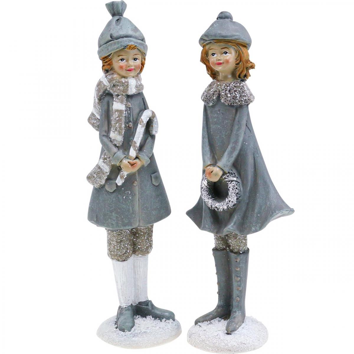 Dekofiguren Winterkinder Figuren Mädchen H19cm 2St