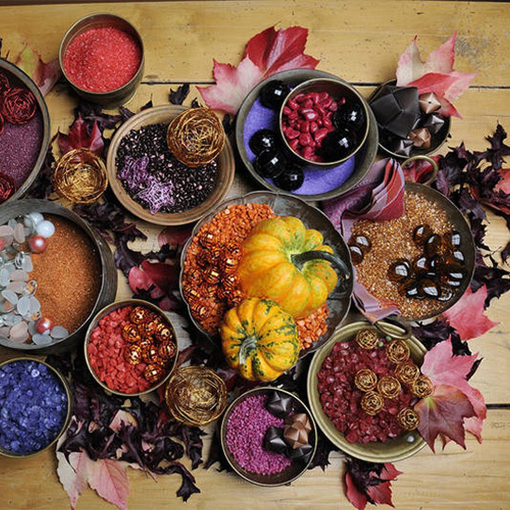 Potete riempirli in modo classico in vasi di vetro, portacandele e ciotole decorative, che sembrano insolite e moderne come decorazioni per la tavola e gioielli per il davanzale della finestra o una cassettiera. Per un look particolarmente fresco è consigliabile abbinare i granuli arancioni con pietre decorative in altri colori per creare fantasie sofisticate.