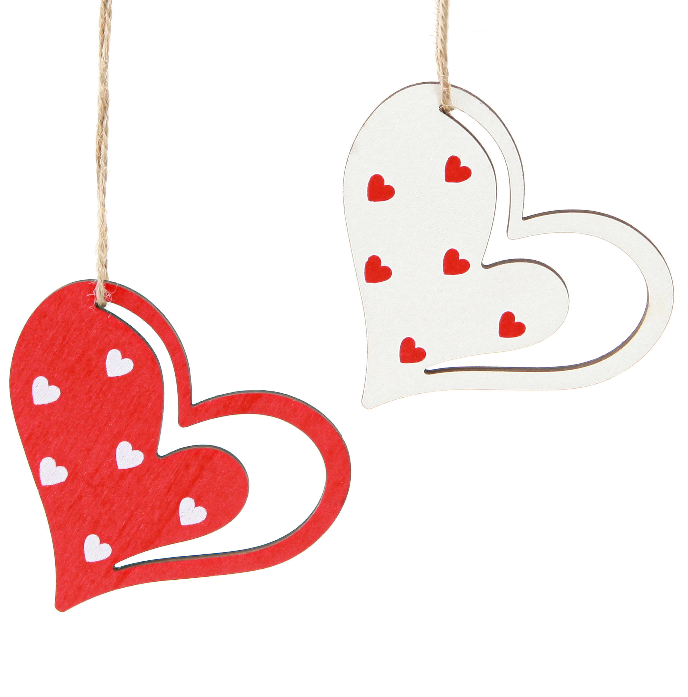 Dekohänger Herz Deko zum Muttertag Rot Weiß 7,5cm 12 St