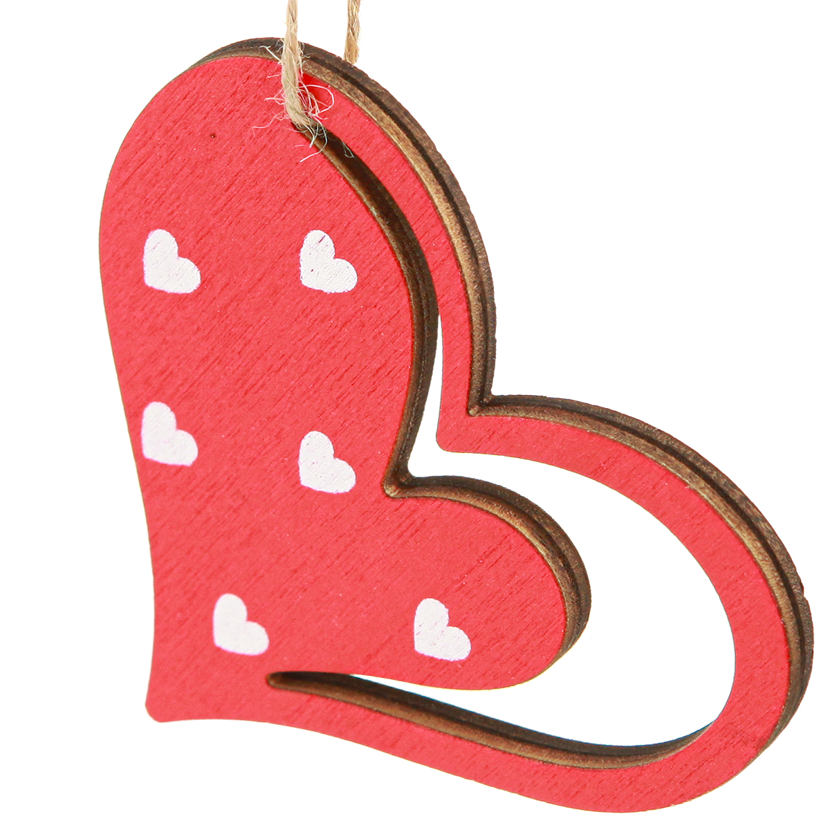 Cintre décoratif décoration coeur pour la fête des mères rouge blanc 7,5cm 12 pcs