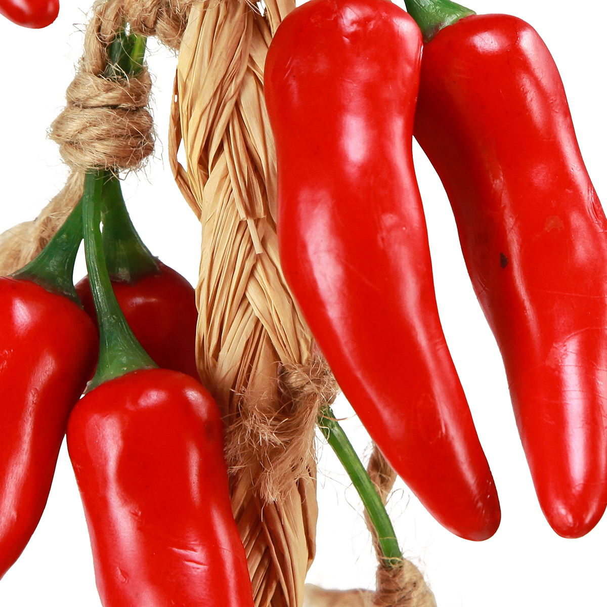 Durch die sorgsame Verarbeitung und Farbintensität eignet sich die Chilischoten-Dekoration gleichermaßen für Sommer und Herbst und passt besonders zur Landhausstil-Einrichtung, kann aber auch hervorragend in moderne oder klassische Dekors integriert werden.
