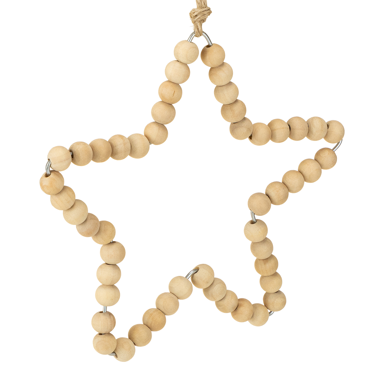 Und am Christbaum lassen sich die mit Holzperlen besetzen sechs Dekohänger als Weihnachtsbaumschmuck anbringen. Darüber hinaus können Sie die Weihnachtsanhänger aber auch als Hängedeko oder als Weihnachtsdeko für das Fenster nutzen. Die schönen runden Holzperlen lassen den Dekohänger von allen Seiten gleich gut aussehen.