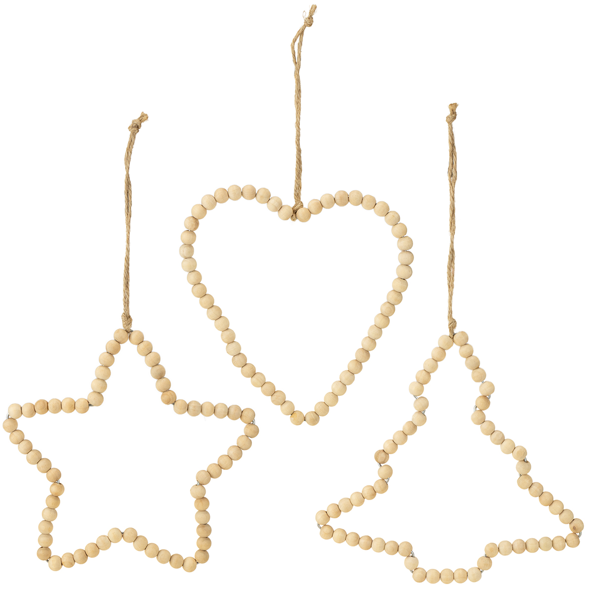 Perles décoratives de Noël en bois coeur étoile arbre H16cm 3 pcs