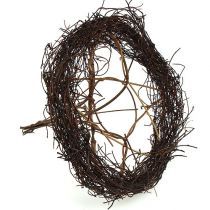 Dieser Kranzrohling hat einen Gesamtdurchmesser von ungefähr 25 Zentimetern, während der Innendurchmesser in etwa 21 Zentimeter beträgt. Die Höhe des Dekokranzes in Natur liegt bei circa 8 Zentimetern.