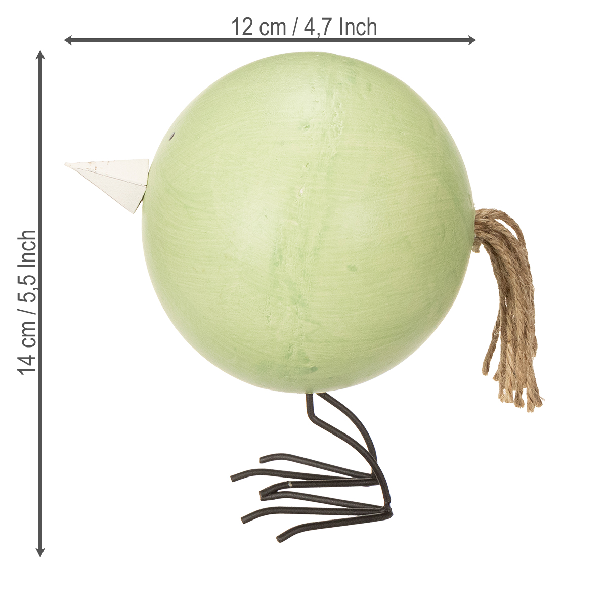 Questi pulcini decorativi colpiscono per la loro lavorazione di alta qualità e la loro versatilità. La combinazione di materiali naturali come legno e metallo si integra perfettamente in una varietà di stili di interior design. Il corpo rotondo in legno ha un aspetto armonioso e naturale, mentre il becco e le zampe in metallo creano un elegante contrasto. I sobri colori pastello giallo, rosa e verde rendono questi pulcini un classico intramontabile, facilmente abbinabile ad altre decorazioni primaverili e pasquali.