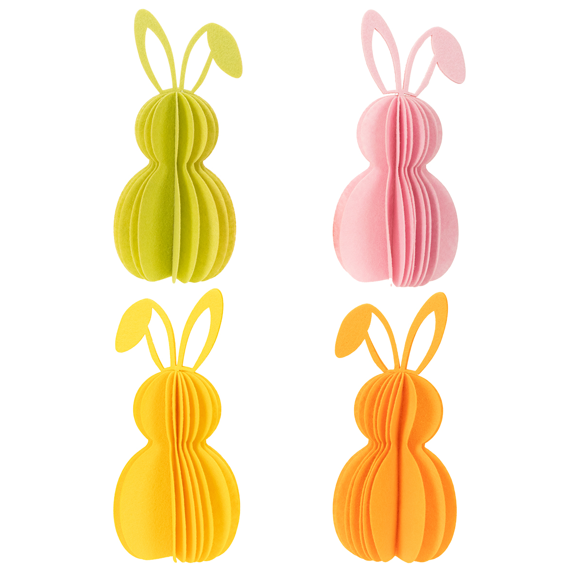 - Set di 4 coniglietti di carta decorativi nei colori giallo, arancione, verde e rosa