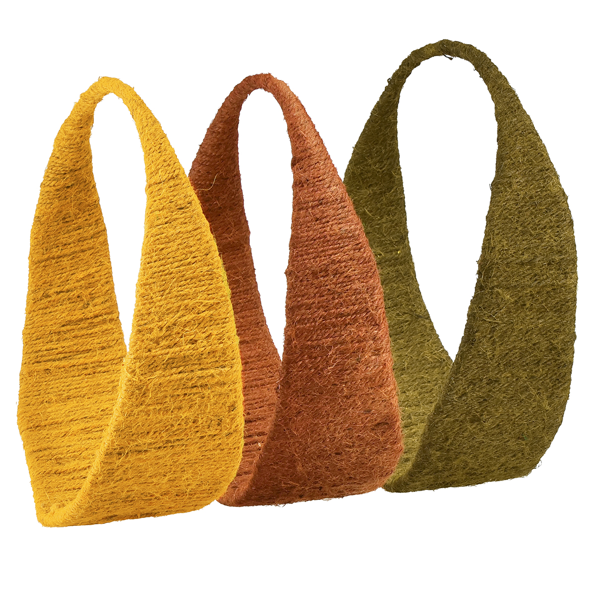 Grâce à leur forme asymétrique qui rappelle un croissant de lune et à leur matériau en jute rustique, nos anneaux décoratifs enrichissent chaque pièce de leur charme. L'aspect naturel s'intègre facilement dans une large gamme de styles d'ameublement et met des accents de couleurs dans une gamme allant du jaune chaud au brun terreux.