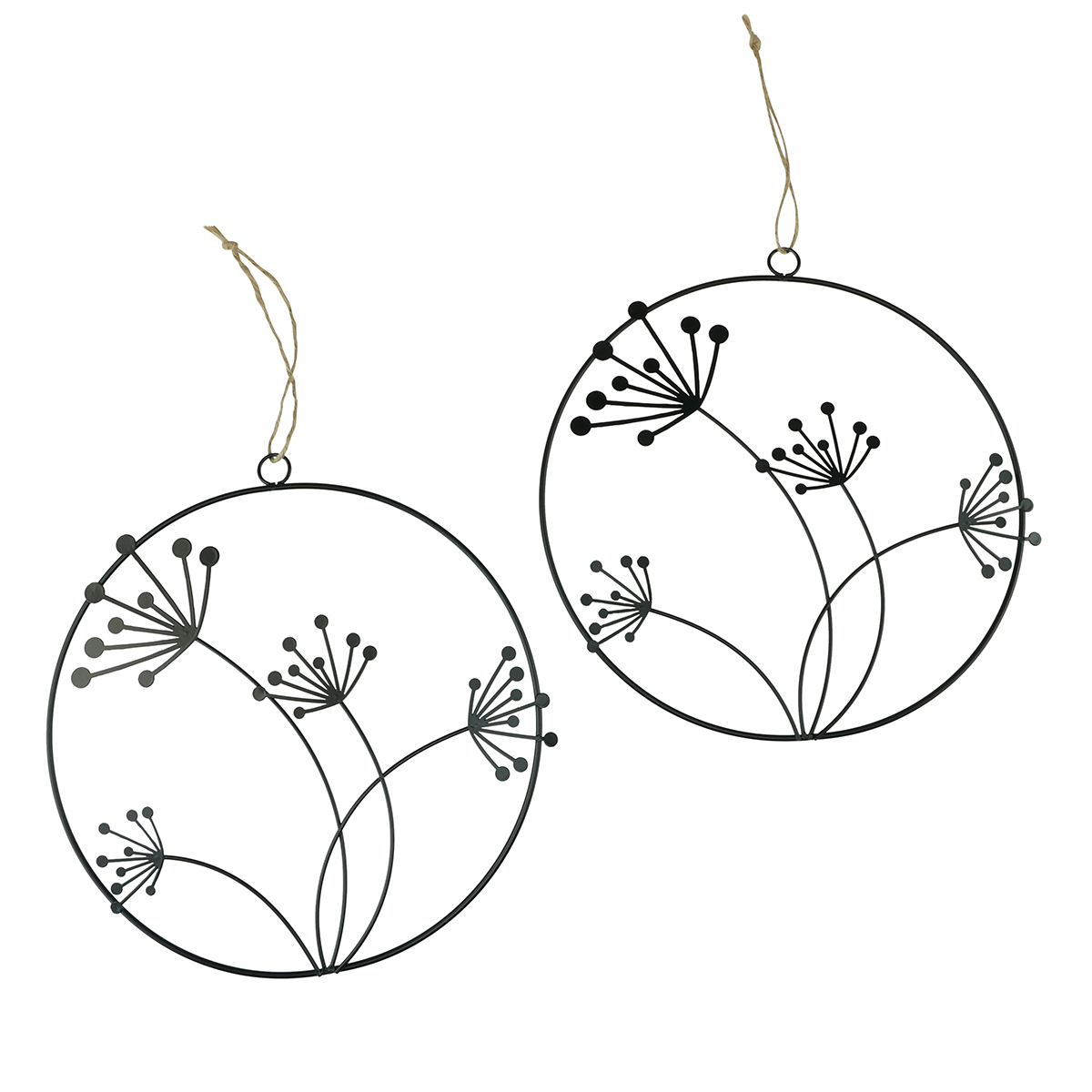 Produktname: Dekoring Metall Schwarz Hängedeko Blumen Ø23cm 2er-Set Sommer Wanddeko