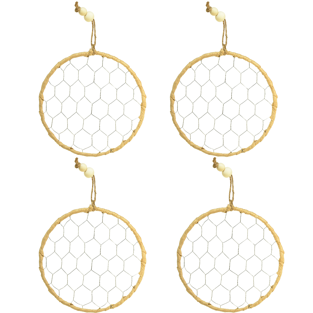 Dekoring Metall Raffia zum Aufhängen Ø20cm 4St Boho Wanddeko Fensterdekoration