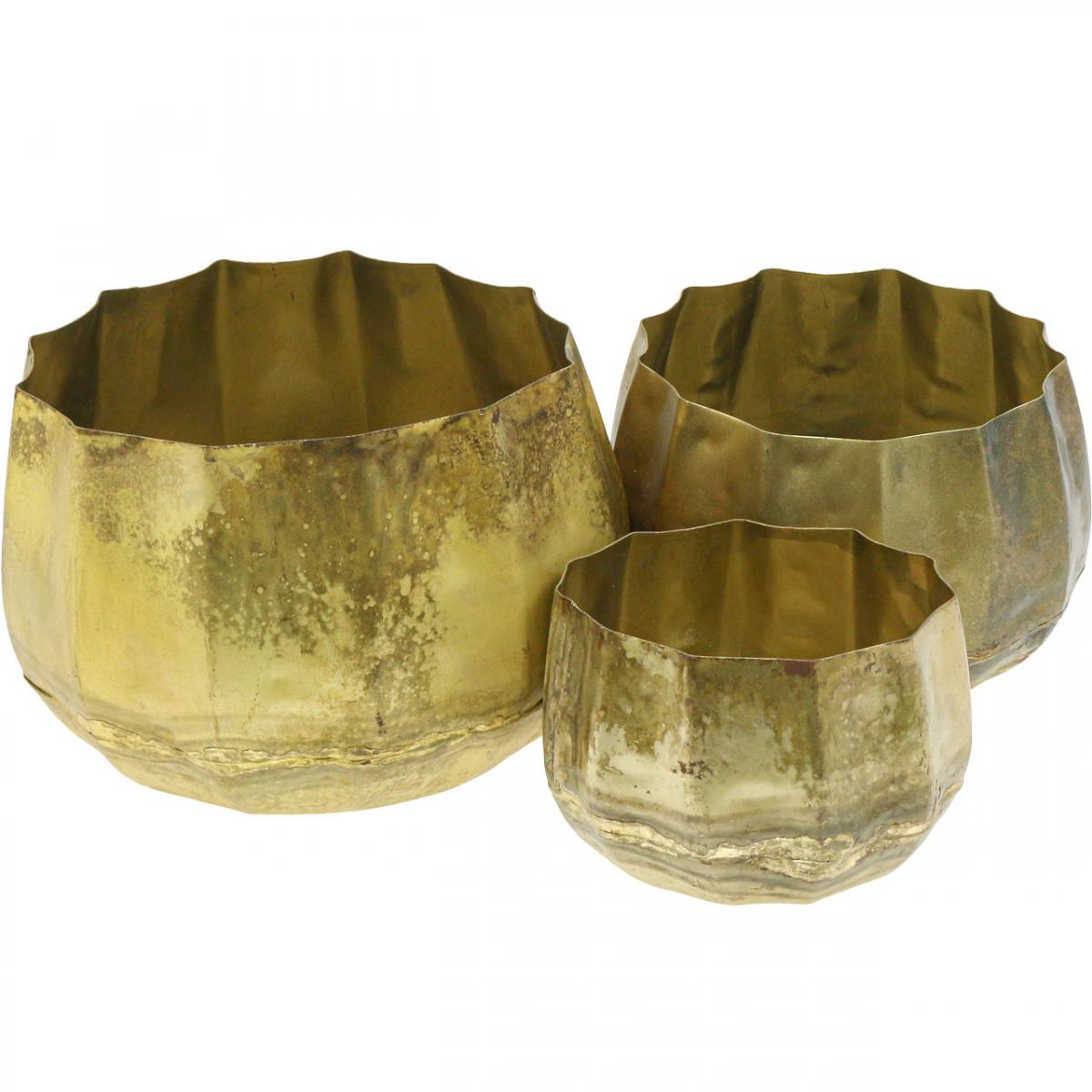 Questa formosa ciotola decorativa in aspetto ottone non lascia nulla a desiderare per le tue opzioni di decorazione. Questo set offre tre ciotole di metallo nel popolare look vintage.I vasi sono in metallo e sono ricoperti all'esterno da una patina color ottone e da segni di usura che li fanno sembrare molto più antichi.