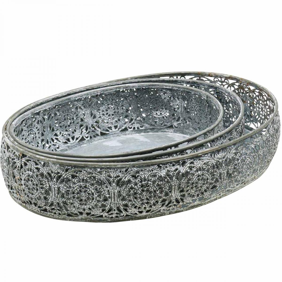 Ciotola decorativa in metallo motivo ovale grigio 25,5/29/34,5 cm set di 3