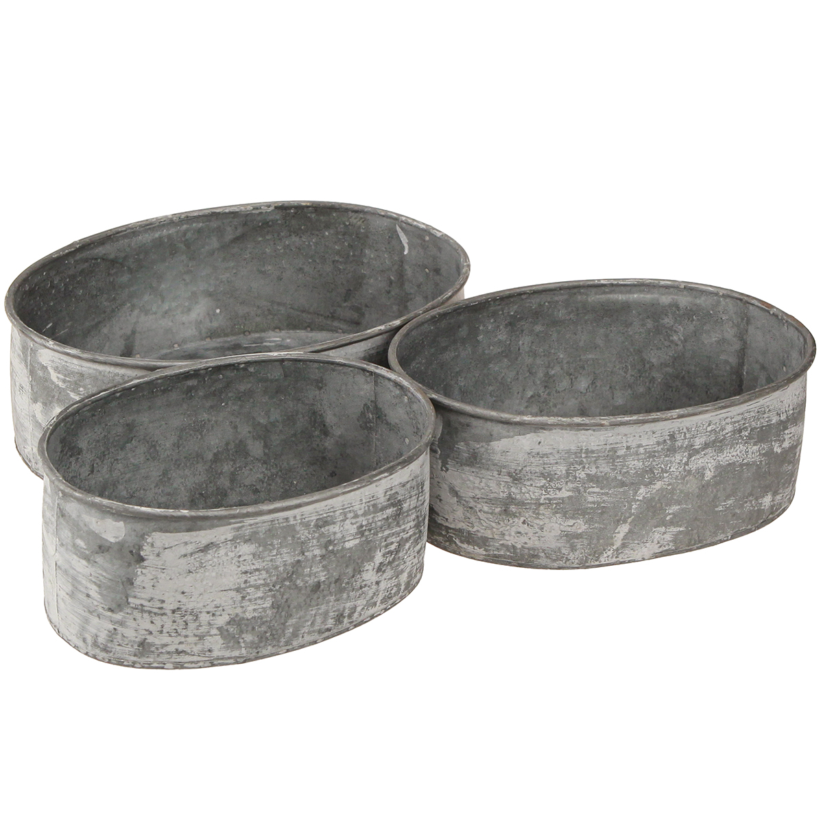 Dekoschale Metall Steckschale Oval Grau L22,5/19,5/16cm 3er-Set