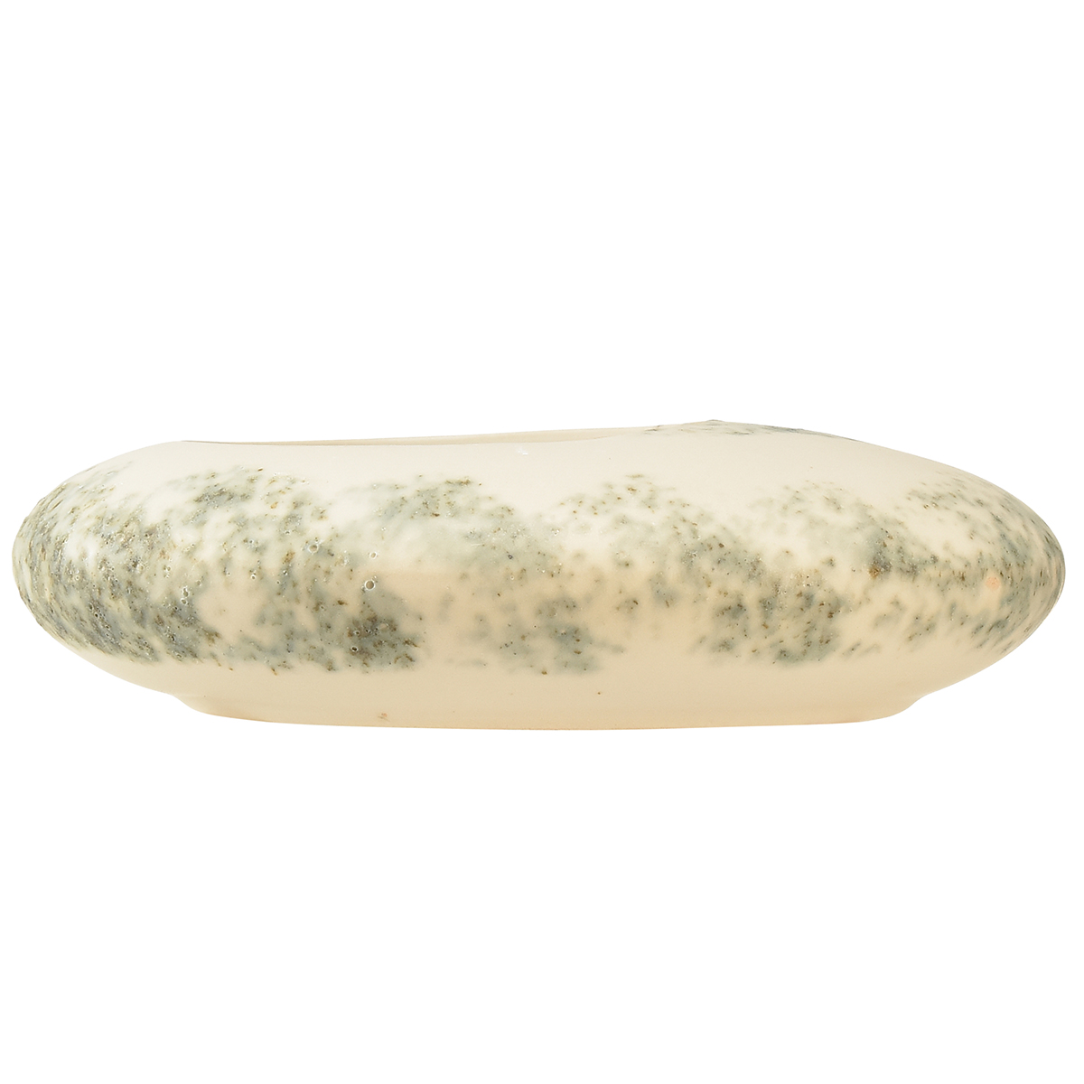 Bol décoratif ovale plat en céramique crème gris vert 19×14×5cm