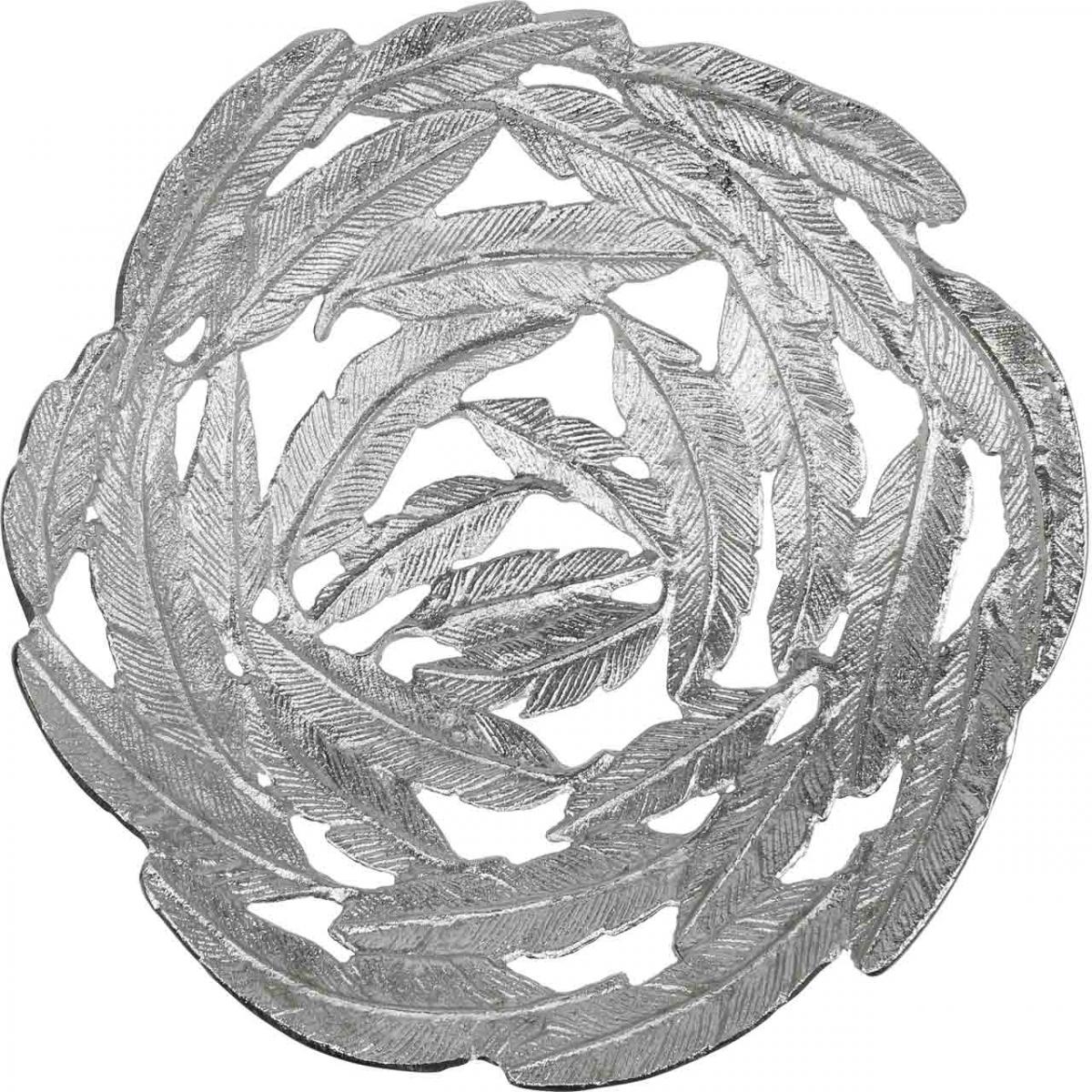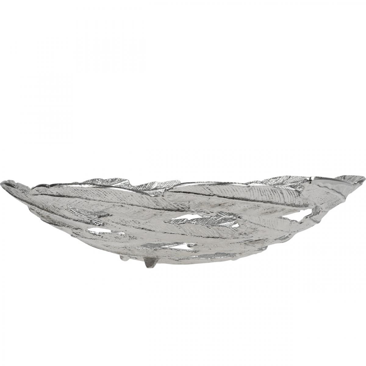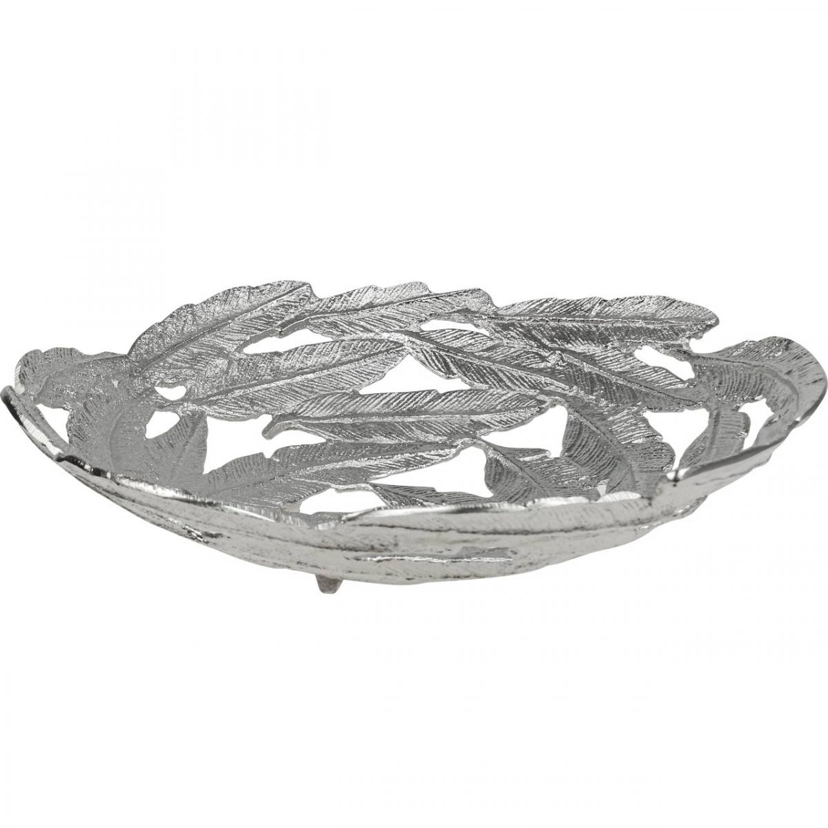 Ciotola decorativa Ciotola in metallo argentato piume Ø37cm H9cm