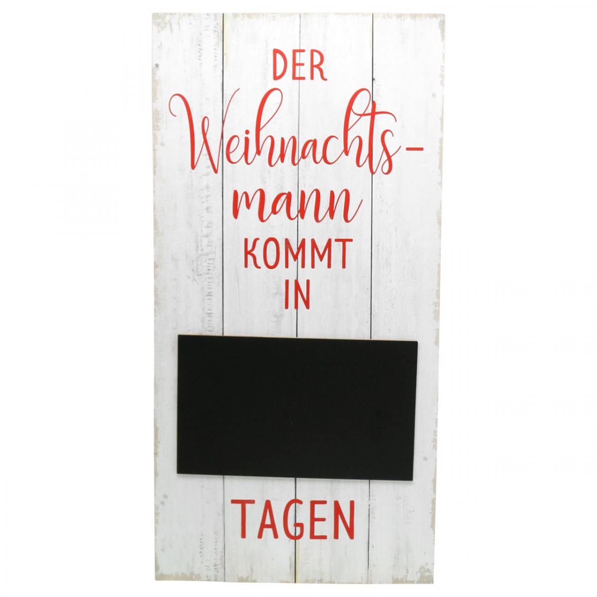 Als umgekehrter Adventskalender ist das Holzschild mit Tafel eine originelle Wanddeko in der Küche, im Flur oder auch im Schaufenster. Nicht nur Kinder werden sich über diese Weihnachtsdeko freuen. Mit einer LED-Girlande oder einer grünen Weihnachtsgirlande können Sie das Deko-Schild noch stimmungsvoll umrahmen. Doch Achtung! Das Dekoschild zum Hängen verspricht auch, dass am Ende der Weihnachtsmann mehr als nur eine Tafel bringt...
