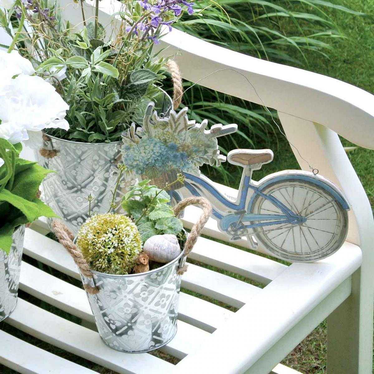 Il cartello decorativo in legno con la bicicletta come straordinario colpo d'occhio può anche essere idealmente combinato con le fioriere decorative della gamma di prodotti estivi. Puoi anche trovare queste fioriere e brocche nel nostro negozio.