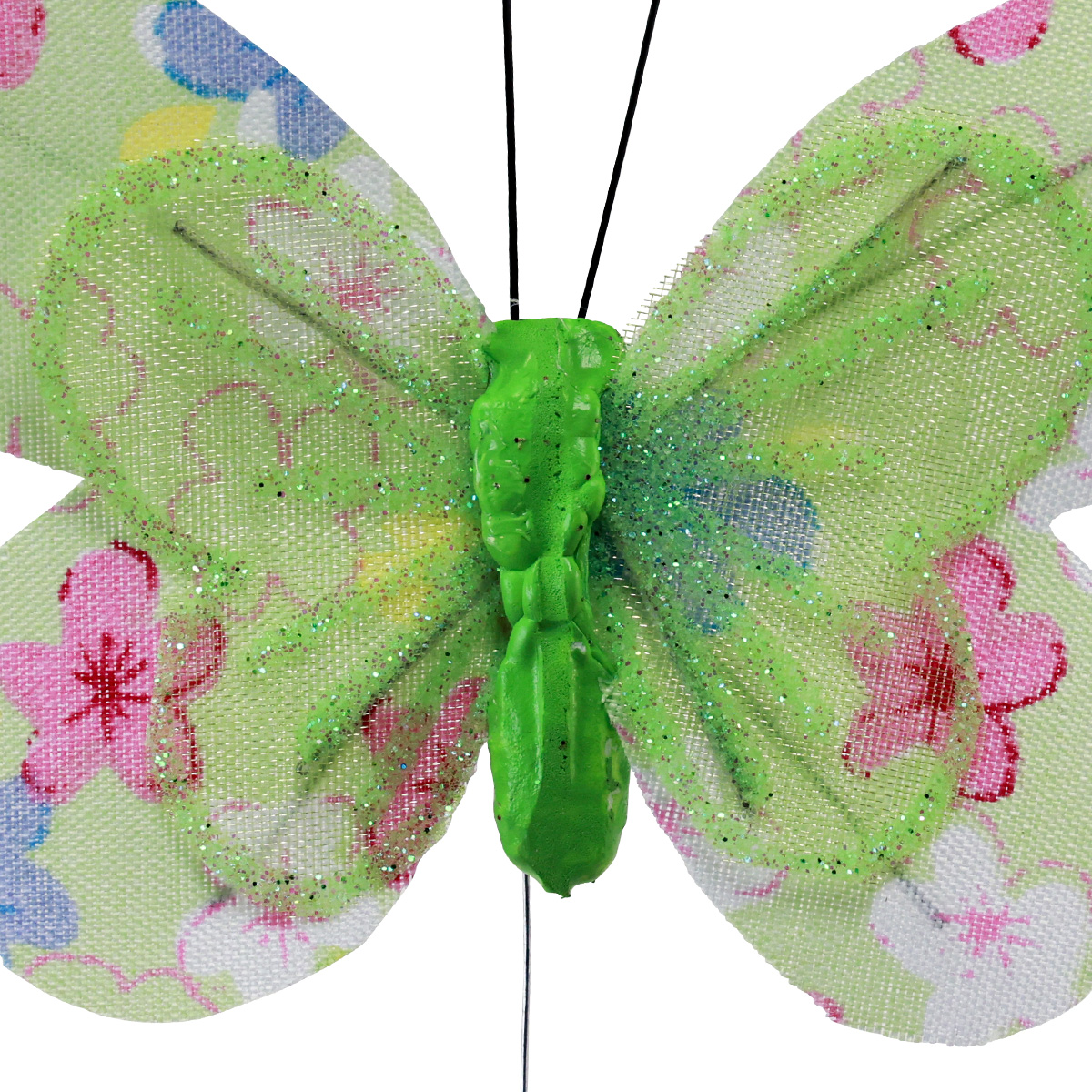 Deko Schmetterlinge am Draht Gelb Grün Blumen 6×9cm 12St